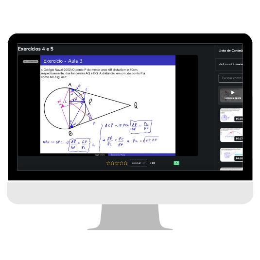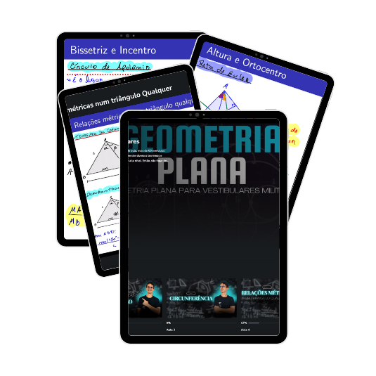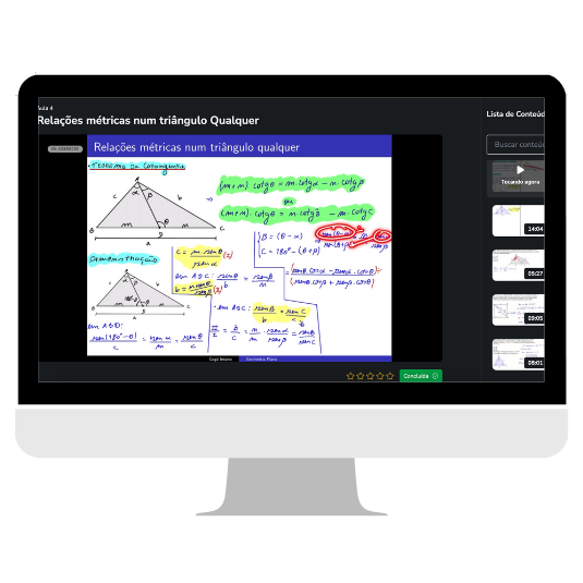Você terá acesso a teoria completa de geometria plana, do básico ao avançado, tudo gravado em vídeo pra você assistir em poucos dias.
