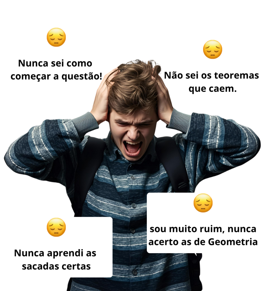 Nenhuma evolução na resolução das questões de Geometria Plana, muita frustração ao tentar fazê-las.